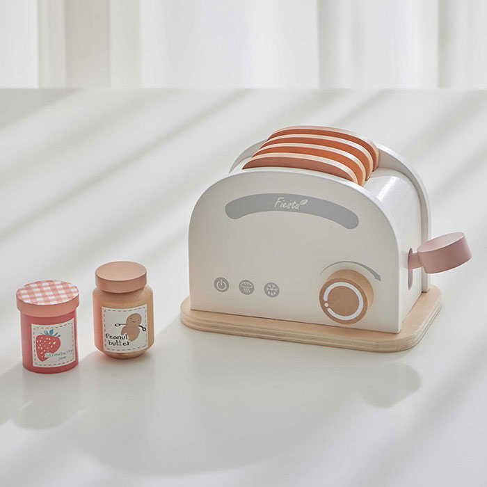 Fiesta Wooden Play Kitchen Set 200*115*120 Pretend Shop and Meal Set for Early Learning Fun Toy Toaster Included