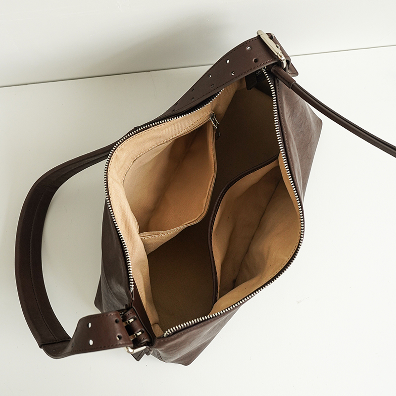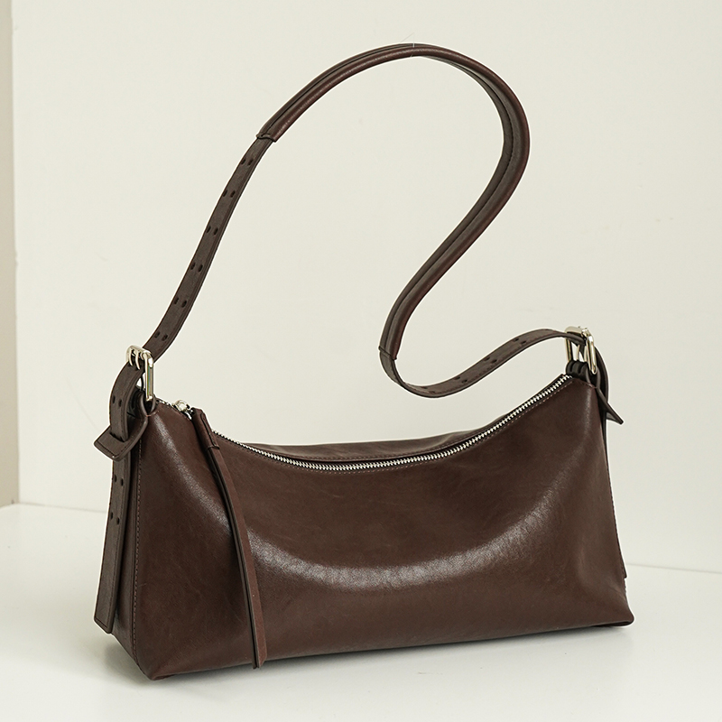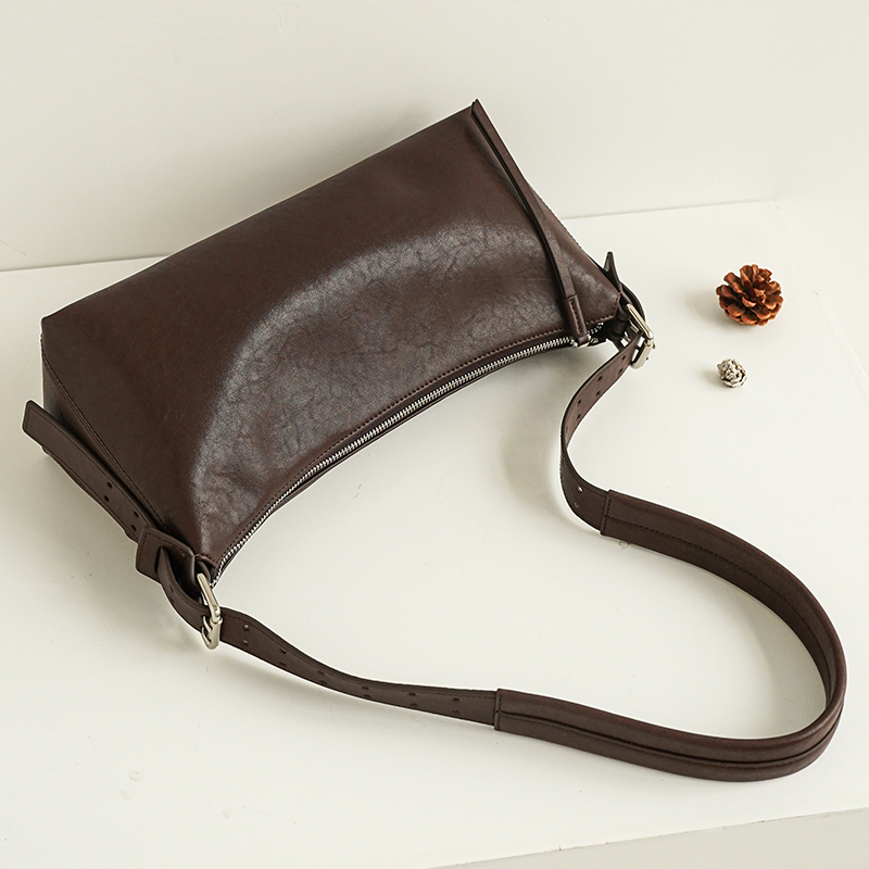High Quality Women's Genuine Leather Shoulder Bag Leisure Retro Style Large Capacity Versatile Zipper Fashion Tote Underarm