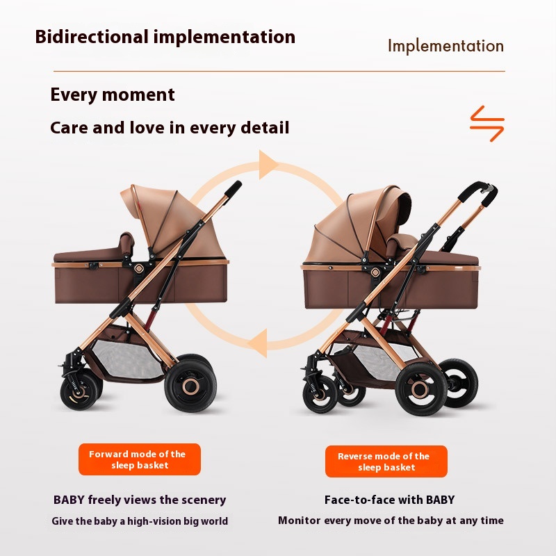 Multifunctional Lightweight Folding Two-Way High View Baby Stroller with Linen Basket for Newborn and Children