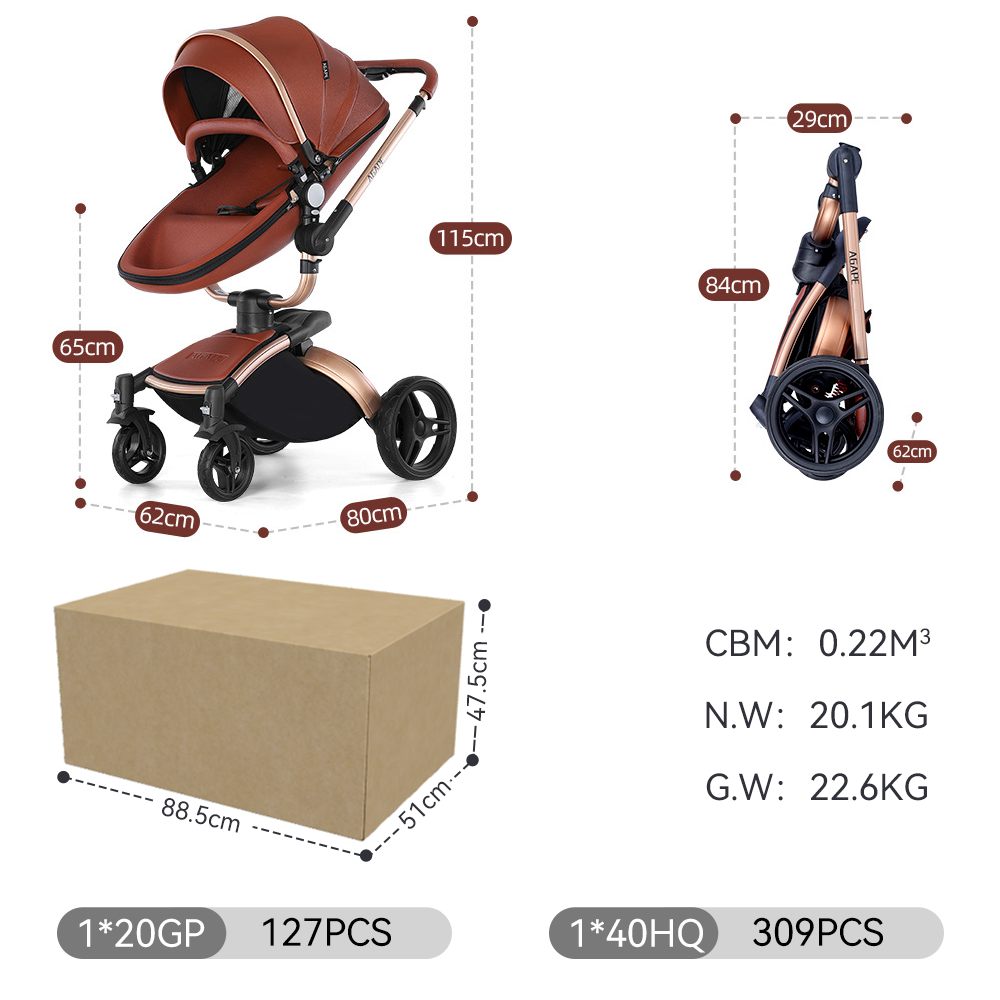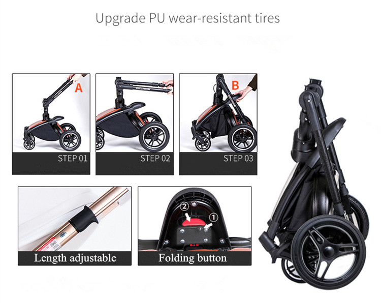 Purorigin Chinese Supplier Directly Sale Luxury Egg Shape Good Price High View 3 in 1 Baby Stroller with Safety Harness
