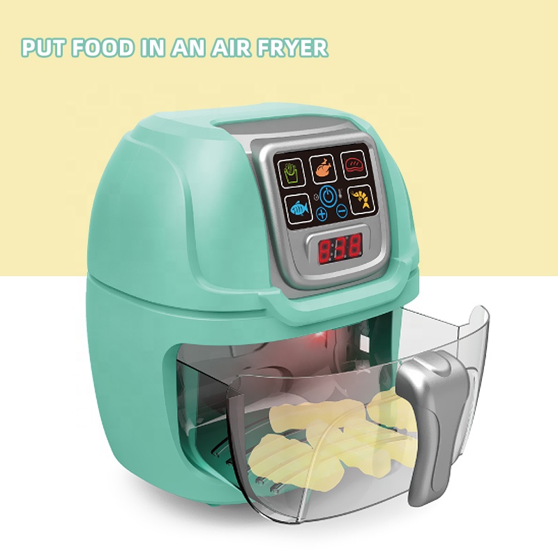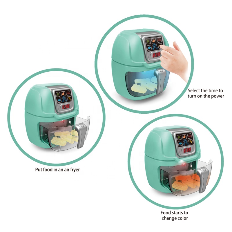 Samtoy 9PCS Simulated Household Appliances Pretend Play Air Fryer Role Play Kitchen Play Set Toy Kids Cooking Food With Light