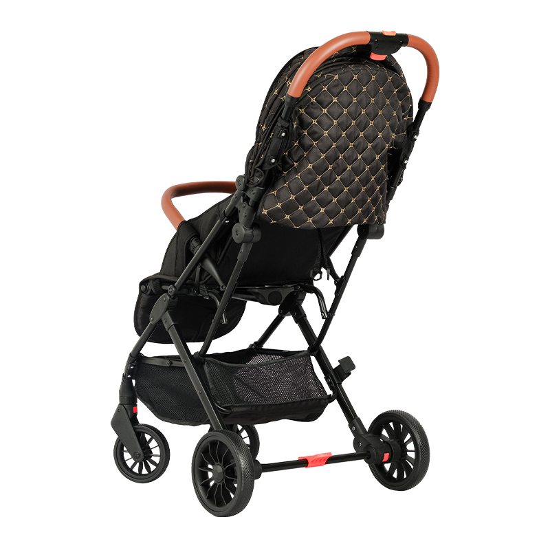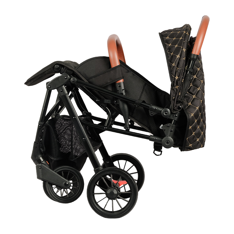 Wholesale Baby Stroller 6 Front and 8 Rear EVA Wheels with Foot Covers Black Quilted Cotton Embroidery with Yellow Thread